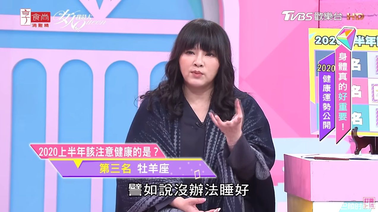 唐绮阳在节目《女人我最大》中,提醒各星座要多留意健康,不过她也特别挑出6个星座,交代要更加照顾健康,因为这些星座都有可能碰上不可抗力的因素,而导致健康危机。