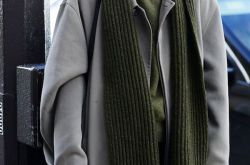 长宽针织开衫外的腰带避免上下一边粗的尴尬,塑造了腰部曲线。 系在腰线以上部位更加能塑造身形。