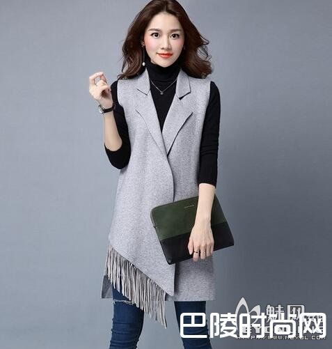 马甲会让层次感顺其自然,加上流苏,不规则这些特别的元素,服装也会变得与众不同起来,马甲你可以选择长一点的,很帅气哦!穿上马甲来展现你与众不同的一面吧!