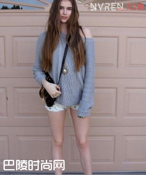 选对了材质,你就走对了第一步。但是如果你单纯地以为上身露了肩,下身就必须裹得严严实实以期达到保暖效果,那就未免有些目光短浅了。虽然上身露出锁骨,但是重要的腿部曲线还是不能忽略,而且大多毛衣都是宽松款式,如果下身包裹过多容易在视觉上给人造成累赘感,这时不如大胆选用短装搭配,短裤或短裙都能凸显你的长腿。但是要注意配搭加厚裤袜。