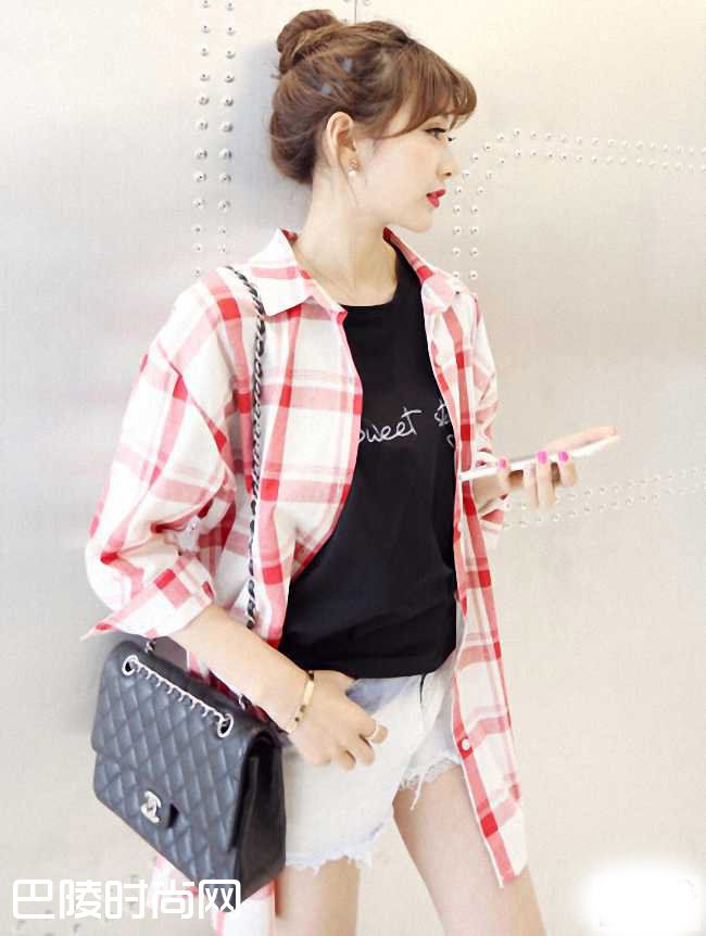 搭配看点:甜美的红白格子衬衫十分衬肤色,内搭黑色T恤和白色热裤,经典的红白黑配色十分抢镜,再搭配一款链条包,更添淑媛范儿。清新的夏日,这么出街绝对秒杀路人哦。
