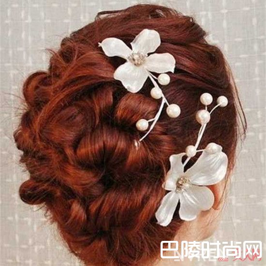 有点凌乱感却也很有条理的盘发,给人一种慵懒的美感,可是也十分显气质,无论是给自己还是其他人都能带来放松轻松的感觉,红棕的发色,并不需要很长的发长,搭上漂亮的白色花朵发饰,即使看不到面部特征,单单从发型就已经能给人一种美感了,这种盘发的设计适合出席婚礼,晚会等聚会场合,是一款很经典能给人带来甜美感觉的盘发。