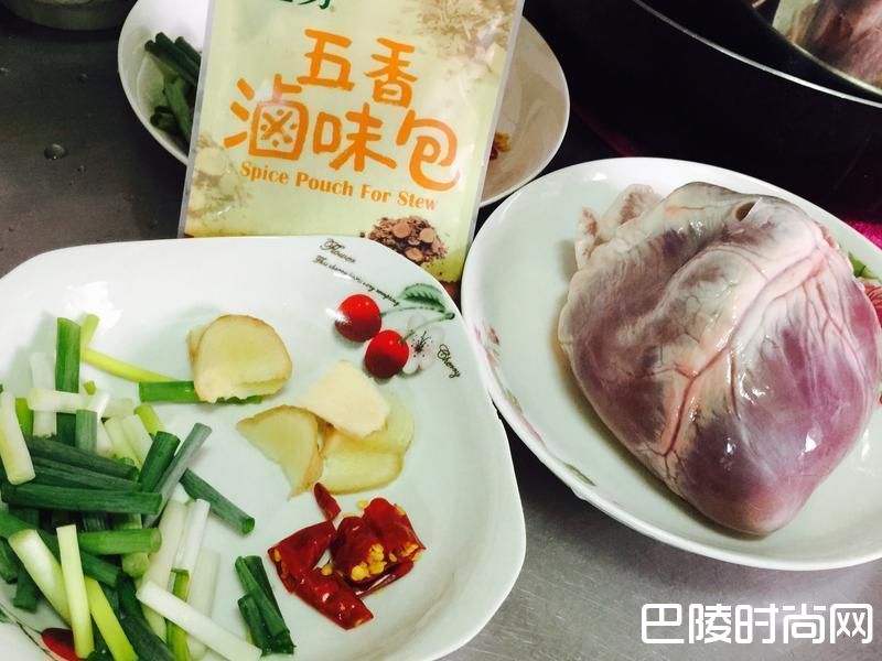 猪心一颗 葱段两根 姜片五片 小辣椒两根(怕辣的ㄧ根) 卤味包一包 酱油五大匙 米酒一大匙 水醃过猪心 做法