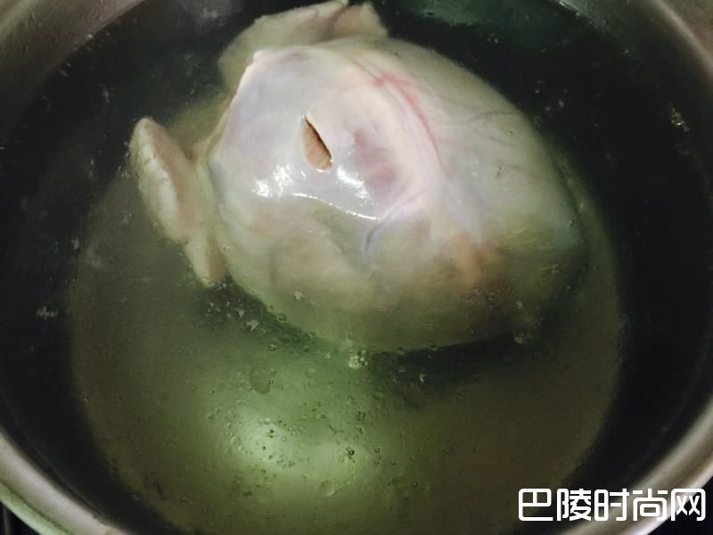 2煮一锅滚水,下猪心滚至脏污浮出表面,即可放盘中待备用