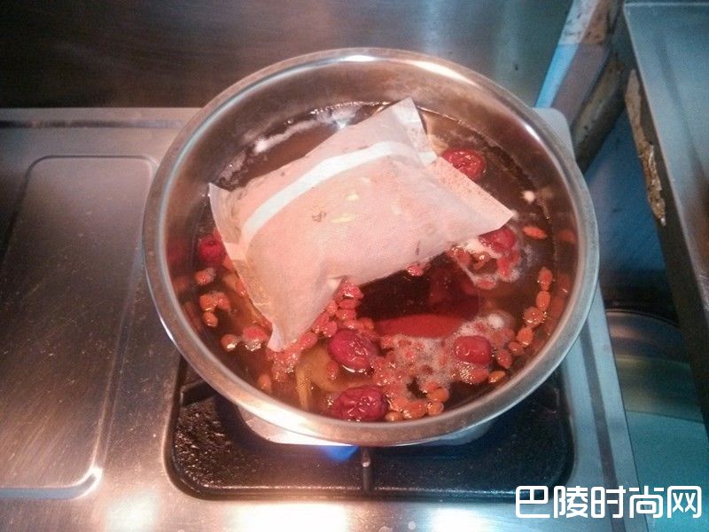 2 放入十全大补中药调理包(一般都没有附红枣)、红枣、老姜片,倒入冷开水到8分满,然后在加上米酒至淹没所有材料