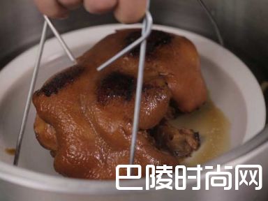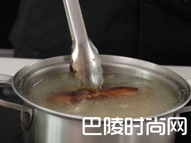 7肘子肉放回鸡汤中。