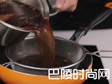 13取一个锅,滤入适量炖肘子的汤,大火烧开,加入水淀粉勾芡,加盐调味,烧至酱汁浓稠。