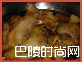 (4)把炒锅中的五花肉盛出换入砂锅中,加适量热水浸没肉块为好大火煮开,再用小火慢煮半小时左右。
