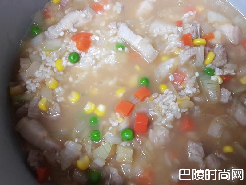 5~起锅倒入电锅的内锅中加入适量的水电子锅按煮饭按键跳起后再焖10分打开即可食用