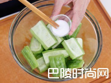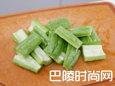4苦瓜加少许盐腌10分钟,然后冲水洗净