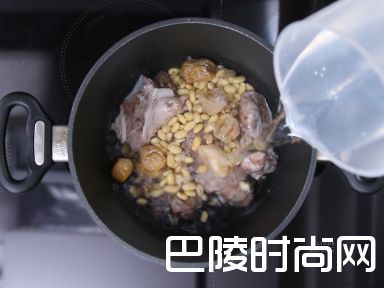 6将猪排骨、黄豆、无花果及蜜枣放入汤锅,加入适量水直至盖过所有材料