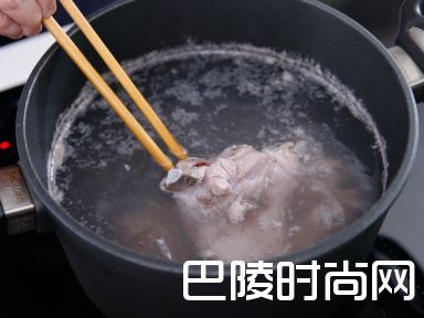 5烧开一锅水,将猪排骨汆水5-8分钟,沥干备用