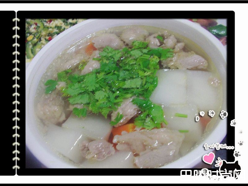 44:当敦炖煮完成ˊ放入调味拌匀ˊ洒上少许胡椒及香菜就可以了