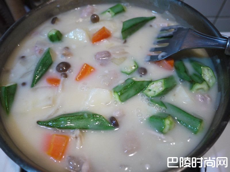 8最后加上约100克牛奶后,熄火,洒上少许黑胡椒及巴西利,即完成这道奶油炖菜啦。