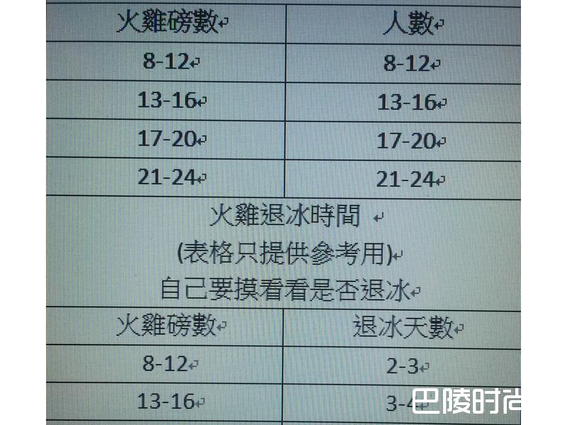 红萝卜2根 芹菜3-4根 洋葱2个 大蒜半个 培根3条 洋葱1个 大蒜半个 香料香肠(西式)4条 洋芫荽4-5大匙 栗子10颗 盐少许 黑胡椒少许 白酒一碗 水或鸡汤一碗 奶油1大匙 面包块1碗公 奶油(室温退冰)2条 洋芫荽4-5大匙 盐少许 黑胡椒少许 盐半碗 糖半碗 整颗黑胡椒粒4-5大匙 柠檬3个 迷迭香4-5大匙 大蒜3整颗 做法 1 材料A 烤盘上 2 材料B塞火鸡肚子内 3 材料C 抹火鸡的奶油 4 火鸡分量& 火鸡退冰时间 (表格只提供参考用) 上一页下一页