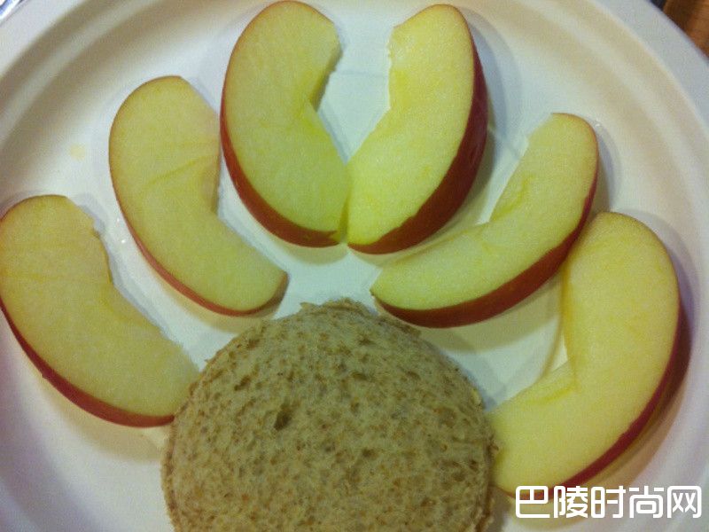 1把水果都切成(剥成)片状,拿一个杯子扣在土司上,把土司切成圆形。