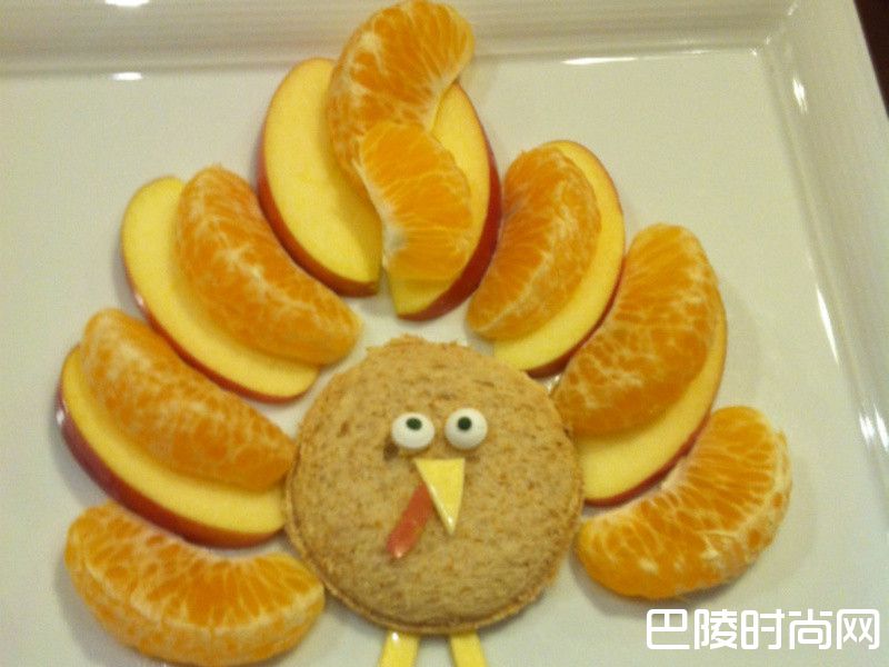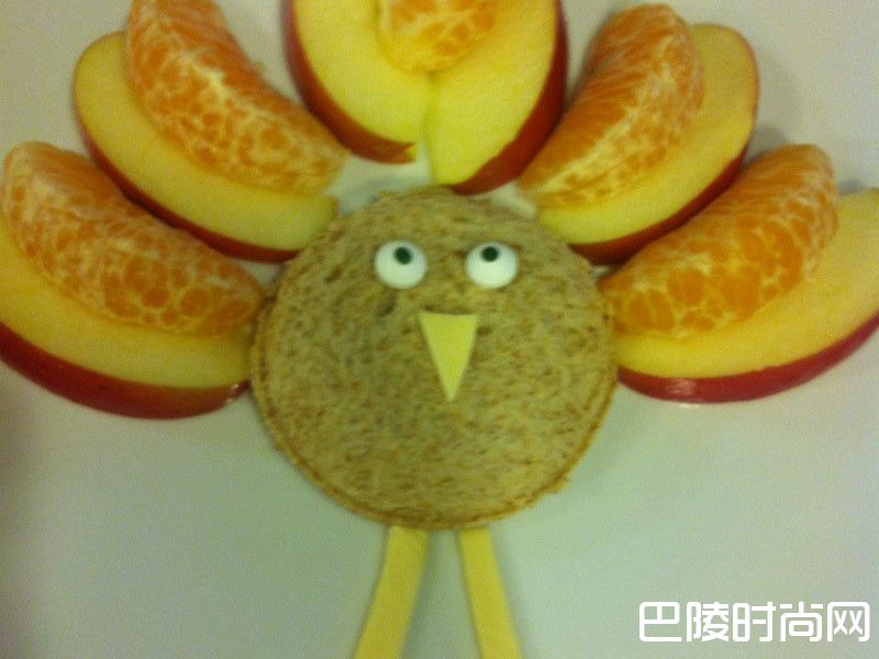 3用小剪刀把cheese剪成三角形作为嘴巴,长条形作为脚,苹果皮(莲雾等也可)剪下装饰。眼睛用眼睛糖,或是蓝莓等装饰。