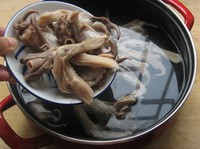 2、锅中加入足量的水,放入洗过的鸭舌,大火烧开后转中火煮5分钟,将鸭舌捞出,再用清水反复搓洗干净,煮过鸭舌的水倒掉不要。