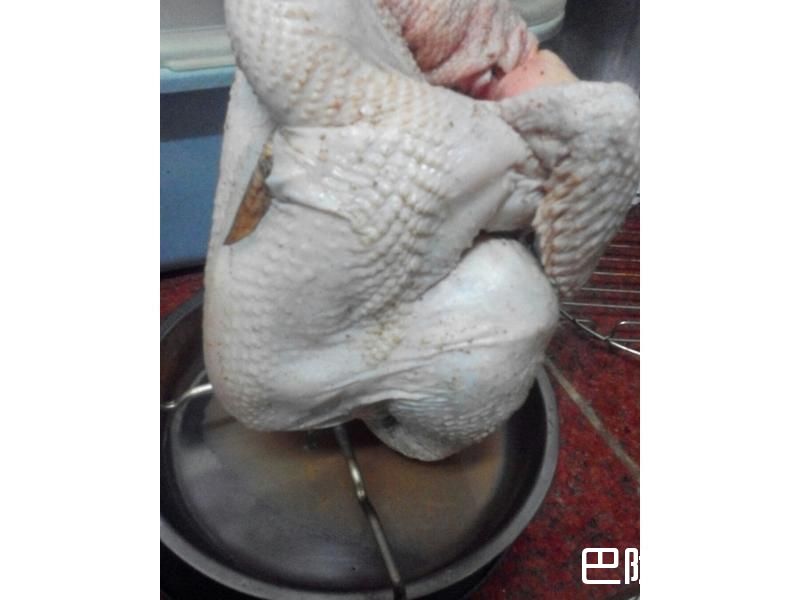4入桶子烤1.5小时候.将烤鸡取出.涂上蜂蜜水.再进去烤半小时[底盘记得要随时补水].