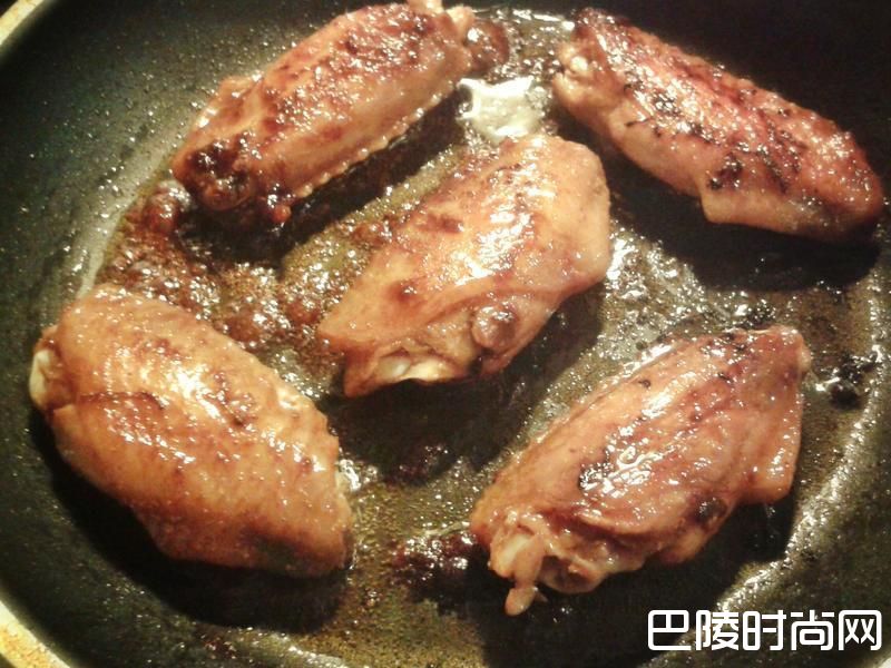 3起锅热油,用中火煎鸡翼至金黄色,完全熟透即成,配上青柠汁及泰式辣酱享用
