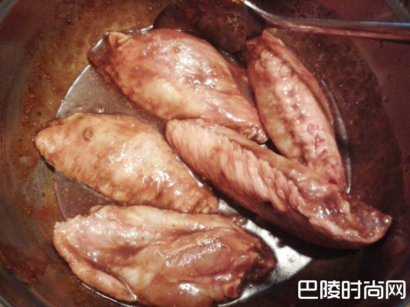 2鸡翼放入保鲜袋或碗内,每只鸡翼都沾匀醃料,放入冰箱冷藏30分钟(最好是醃过夜,更入味)