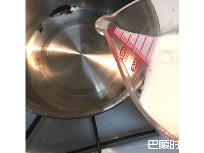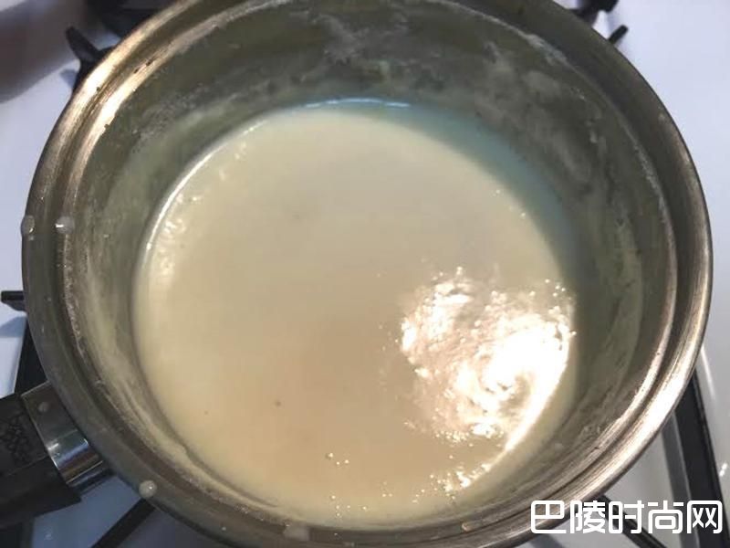 4用中小火煮约15分钟,煮到牛奶变浓稠。