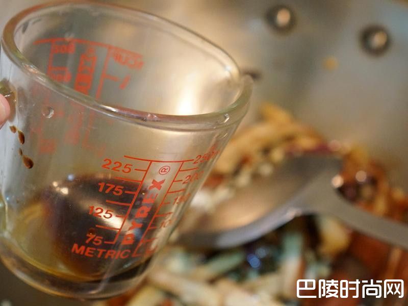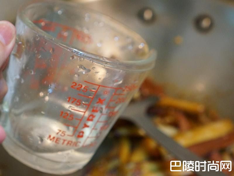 7倒50ml水入锅中,免得酱油焦香味太重。