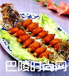 4、再将鱼馅包在藕条上,沾上面包糠,入油锅炸熟,色微黄,取出沥油,装盘,带花椒盐蕃茄汁佐食。