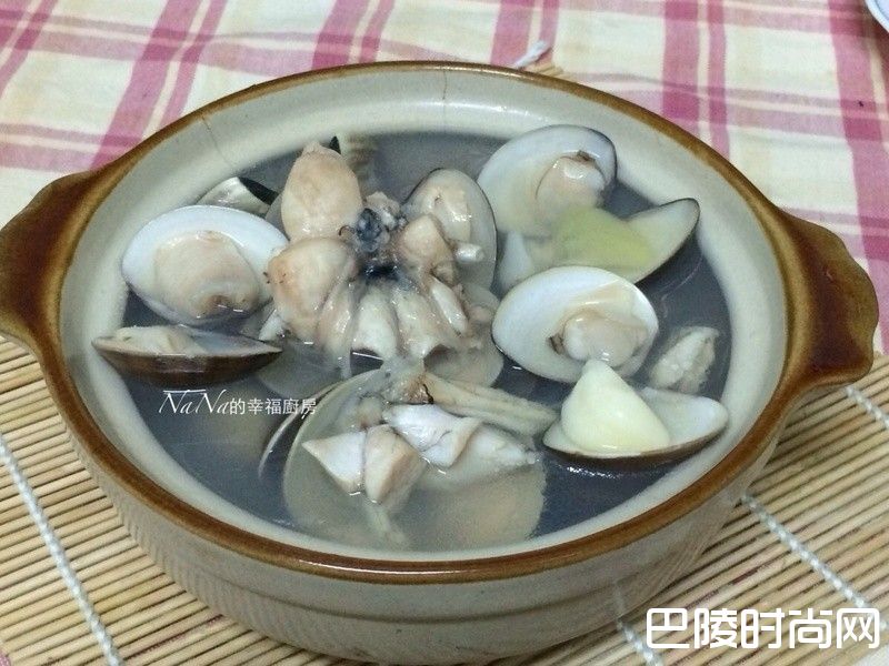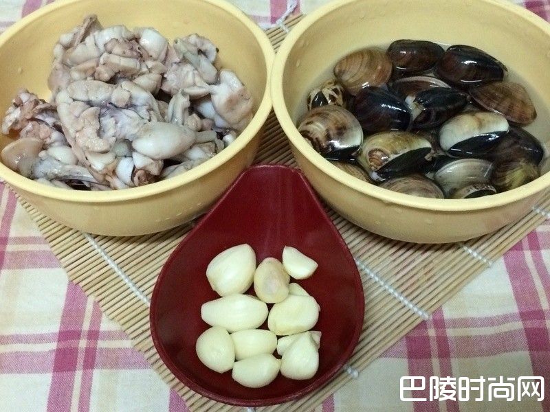 食材:5 牛娃2只 蒜仁50g 蛤仔500g 姜5片 米酒1大匙 做法
