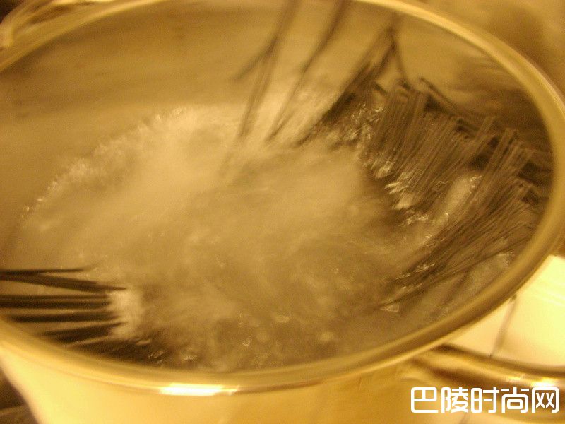 11.取一深汤锅水滚后放入墨鱼面煮至7分熟程度(备用)约5~6分钟