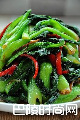 2、热油锅里放辣椒和姜末炒香,再放菜心一起炒,起锅时加点盐和鸡精即可。