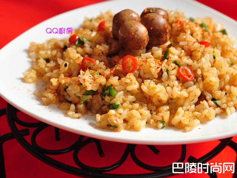 10再把巴西蘑菇放入炒饭中间上层,洒上七味粉就可以享受午餐囉~