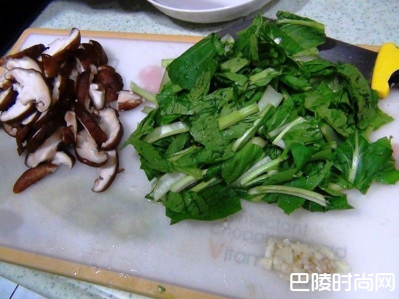 1先将油菜香菇洗净,蒜头切碎。