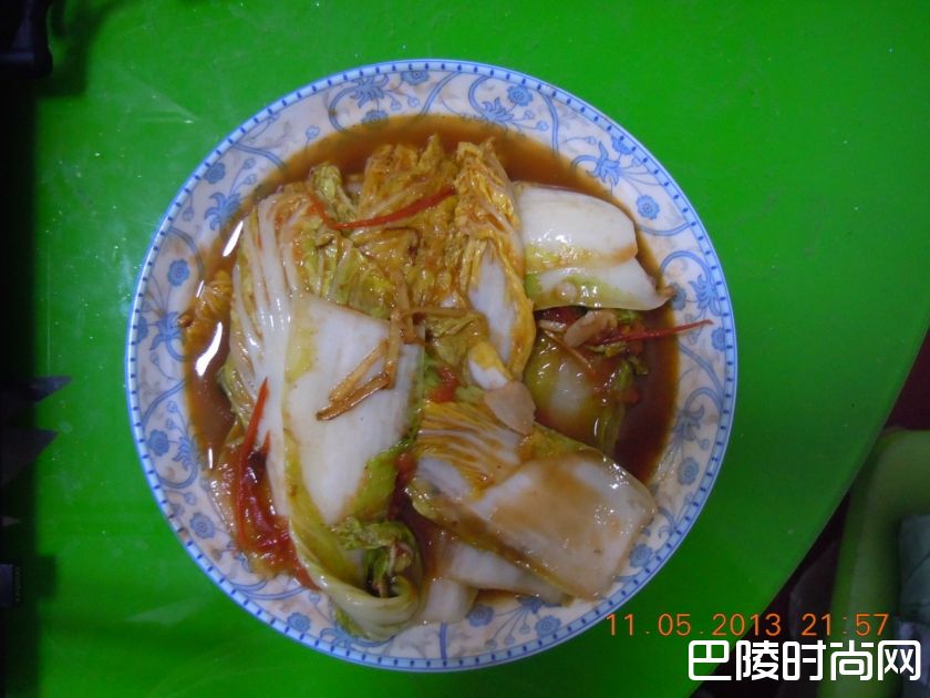 3、约3min后看到娃娃菜在锅中变色,向锅中加入一定量食盐,十三香;翻炒约1min后,加入少量酱油调色即可。