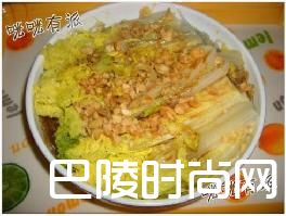 2.然后取一个大碗,把粉丝铺在最下边,再把炒好的蒜蓉汤汁分别倒在粉丝和娃娃菜上,最后大火蒸15分钟就行了.出锅的时候再淋点美极鲜酱油.