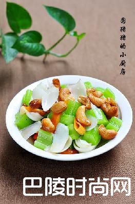 主料:百合50克,西芹100克,胡萝卜50克,腰果50克