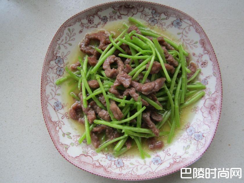 芦蒿300克,牛肉200克,油、盐、淀粉、胡椒粉、料酒适量。