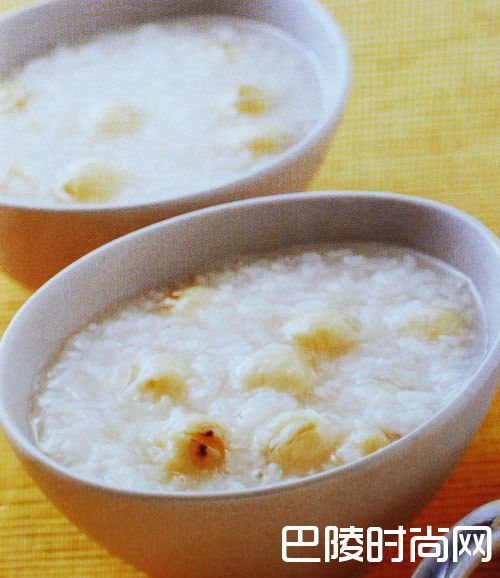 2、莲子洗净,放入粥内同煮,并加入冰糖调味,待冰糖融化即可熄火盛出食用。