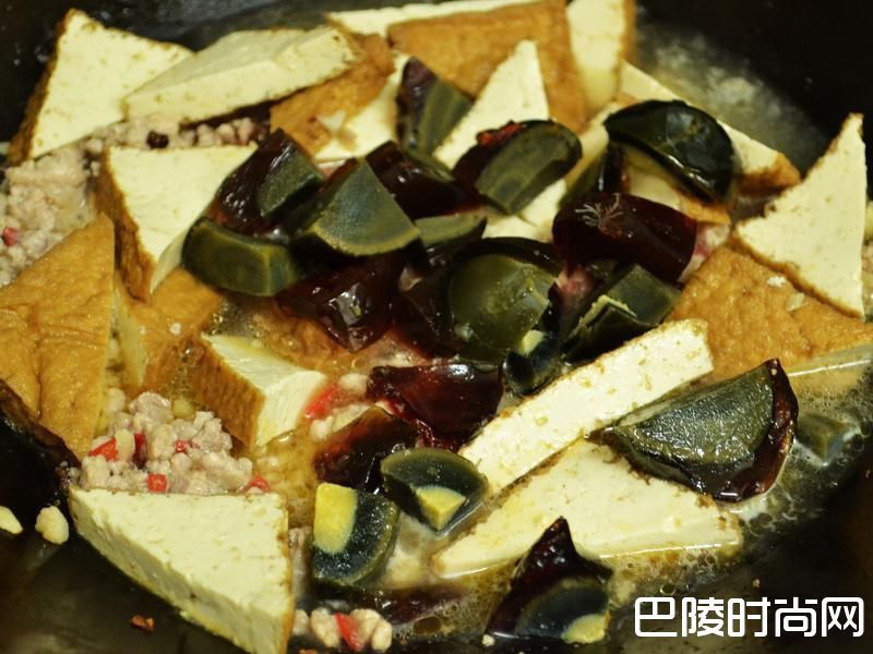 9加入油豆腐与皮蛋。
