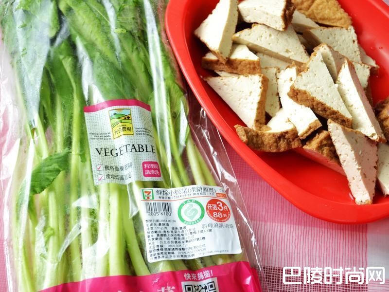 2油豆腐切成片状备用。
