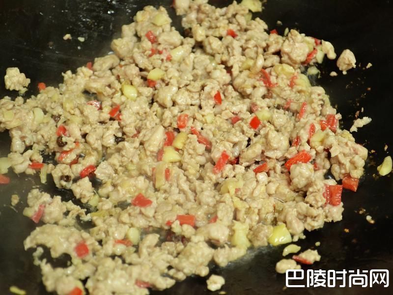 8加入绞肉将肉的香气炒出来。