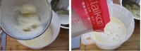 2.将作法1泡过的黄豆放入果汁机中加入500㏄水,搅打成浆,取一纱布袋,将作法打好的豆浆倒入,将豆渣过滤掉。