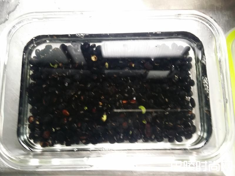1首先黑豆先泡水,出门上班前先用容器装豆子,豆子先洗过,然后注水,水盖过豆子即可,夏天天气热怕豆子坏掉发臭,所以可以放冰箱