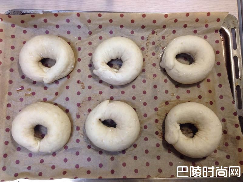 5准备半锅水,加入一匙砂糖,水滚后转中小火,再把贝果放入,正反面烫30秒