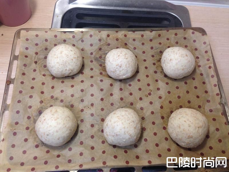 3把面团均分为每个120g的小面团。整圆后收口朝下,盖上保鲜膜等待25分