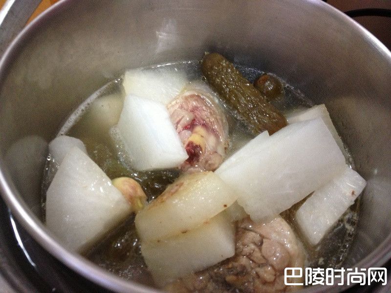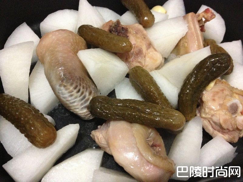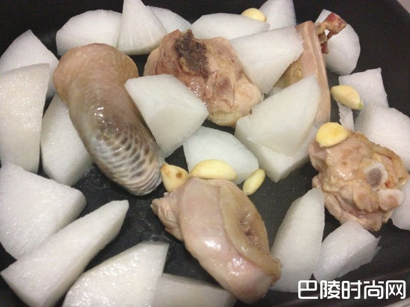 萝卜半条 鸡腿肉半只 蒜头几办 醃瓜子几条 姜末少许 麦芽糖少许 黑糖少许 海盐很少许 做法