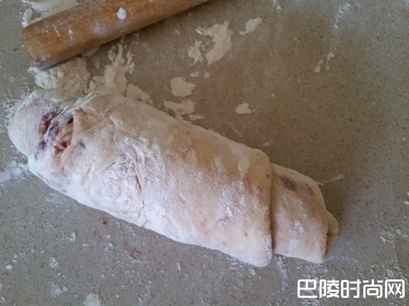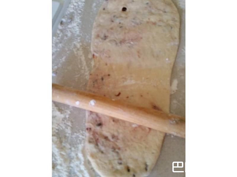 2将面团杆开,卷起,再发酵十五分钟,再杆平,再卷起。