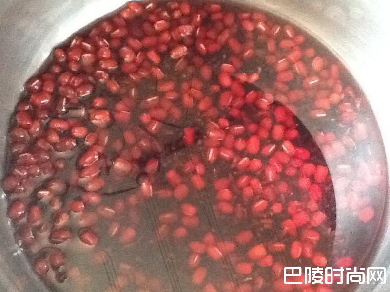 2起锅,放入红豆,加水,开大火煮滚后,转中火,续煮10分钟即可关火。