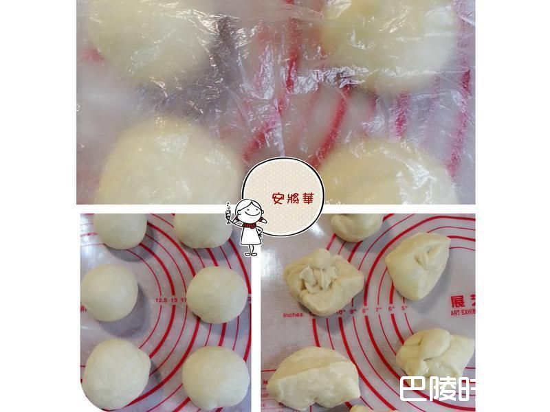 6将包好滚圆的面团间隔排放烤盘,表面喷些水,入烤箱后发约60分。这是参考时间,请凭经验观察~一般为40-60分