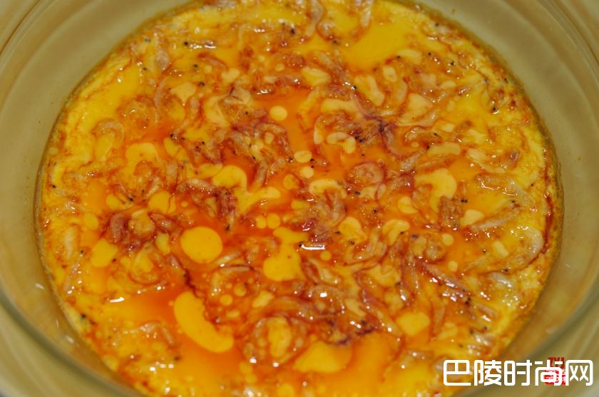 2、将虾皮鸡蛋打入大碗中,放入盐和味精或鸡精。